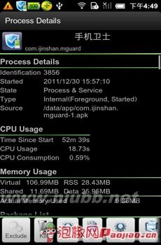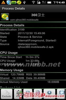 智能手机最大的一个弊病就是续航能力的不给力,因此对系统资源的消耗也是极为关键的一个评测项目。我们可以看到,360手机卫士和金山手机卫士的内存、CPU等各项资源消耗情况如下。