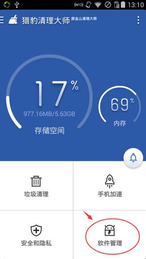 1、首先我们要先拥有这款app,打开桌面上的“猎豹清理大师”