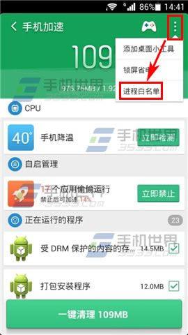 2)点击右上角【...】,选择【进程白名单】,然后点击右上角【+】。(如下图)