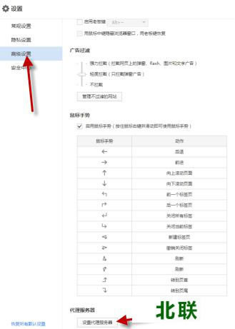 5、选择高级设置,找到设置代理服务器