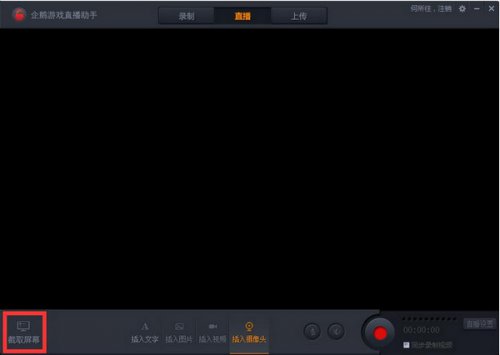 1、启动企鹅游戏直播助手,登录后选择直播tab,点击截取屏幕按钮
