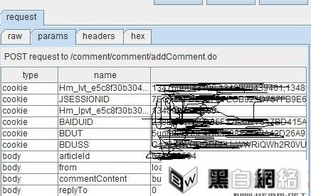 首先我们自己先分析网站B的发帖代码,也可以直接抓包,我这里用burp suite 代理工具实现(关于burp suite的一些使用方法见http://www.xxxx.comhttp://www.huacolor.com/article/201209/155614.html),在IE中设置好代理,然后去网站B上正常留言,burp suite截取到post数据包,查看具体信息,截图: