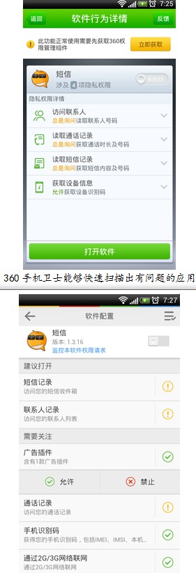 而江民手机安全管家则表现最差,没有提供相关功能,只能通过黑白名单拦截短信、来电,只提供了最低限度的保护。