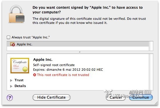 据报道,一个名为“Flashback.G”的Flashback木马变种盛行,运行在旧版Java运行库中,安装旧版Java运行库的雪豹成为首当其冲的攻击对象。这种病毒通过一个虚假网站传播,一旦用户访问含病毒的网站,恶意软件将会窜改浏览器的安全设置,并自动安装到用户的电脑。