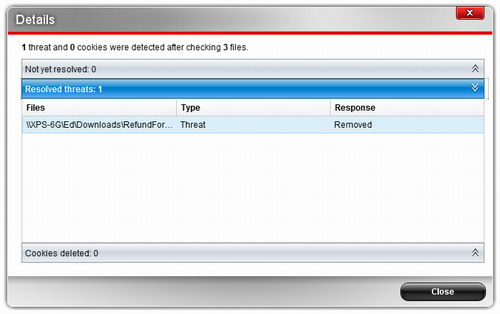 在出现的10小时后,VirusTotal提供的41种引擎中才有7种将其认定为恶意软件。趋势科技在线杀毒服务HOUSECALL确认其为恶意软件。但本地系统中的趋势科技软件却和诺顿网络安全特警一样认为不存在威胁。