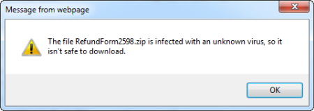 不过,对于我的系统来说,好消息是星期二的威胁被一项单独的安全机制所阻止。Hotmail过滤器将该邮件移动到垃圾邮件文件夹里,并指出收件人非常可疑,没有经过附加认证步骤的话,将会禁止下载附件文件。所有文件的实际格式都被正确地显示出来,标识和社会化工作伪装被识破。在变种出现的4小时后,Hotmail正式禁止了附件的下载和打开。尽管邮件依然保存在收件箱里,但试图下载的话,就会看到如下提示: