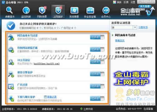 图3 金山毒霸“上网保护”集多项安全防护功能于一身