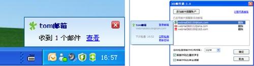 360邮件通支持多账户集中管理,可以对不同服务商提供的多个邮箱账户进行集中管理,添加或删除账户都非常简单方便。只需要单击“添加邮件提醒账户”后,按提示即可添加个人邮箱账户,可以添加无限个账户。