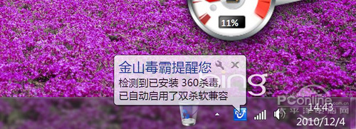 我们再来看一个相反的例子,就是在安装360杀毒2.0 之后,金山毒霸自动显示已经转到了双杀软兼容模式。