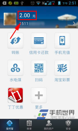 1)打开支付宝软件,进入主界面后点击个人支付宝账号旁边的箭头,或打开我的资产,如下图所示: