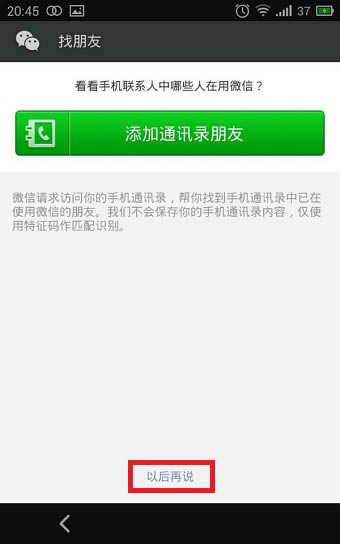 4、“添加通讯录朋友”,看你自己的需求,不需要的话就直接点击下面的跳过。