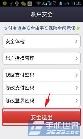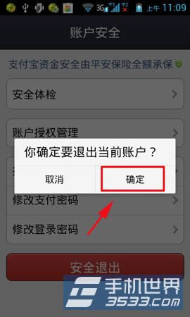 2)进入账户安全后点击“安全退出”,最后支付宝会提示是“你确定要退出当前账户”,点击“确定”即可安全退出支付宝了。