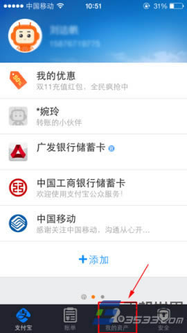 1)打开支付宝钱包,进入软件界面后点击“我的资产”。(如下图所示)