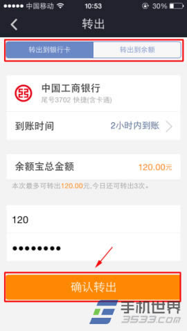 3)转出的途径有“转出到银行卡”,“转出到余额”,小编选择的是“转出到银行卡”。输入要转出的金额,点击“确认转出”后输入支付密码,这样支付宝余额宝提现就成功了。(如下图所示)