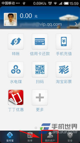 2)使用自己的支付宝账号登录“支付宝钱包”,登录进入后点击“我的资产”。在“我的资产”里面就能到“余额宝”功能按钮了。(如下图所示)