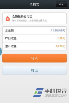 4)大家可以根据自己的情况,转入适当金额即可,如果绑定银行卡快捷支付功能的用户可以直接使用银行卡快捷支付转入。(相关教程:支付宝如何绑定快捷银行卡?)
