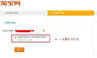 4、进行账户验证,现在主要是验证邮箱和手机号码,这两样东西都必须验证,而且一旦有用过就不能再进行注册。同时要勾选“同意支付宝账号的创建……”
