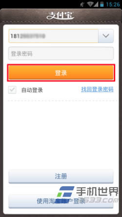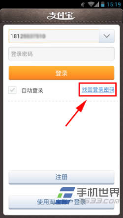 6)密码修改完后支付宝会自动跳到登录界面,输入手机号和密码登录即可。(如下图所示)