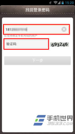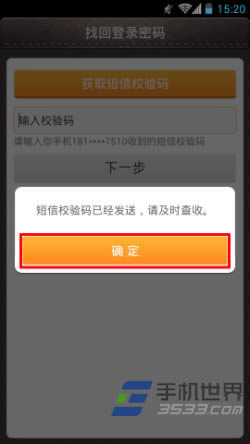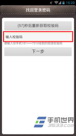 3)收到短信后,将短信上的效验码填到输入框里,然后点击“下一步”。(如下图所示)