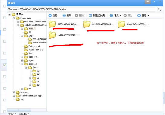 Audio 这个文件是音频。就是你和微信好友,漂流瓶聊天的声音记录 打开之后会发现,又有很多子文件夹。这里面每个文件代表着不同的微信交友,尝试打开一个,里面的文件是aud的并不是我们熟悉的arm或者MP3格式