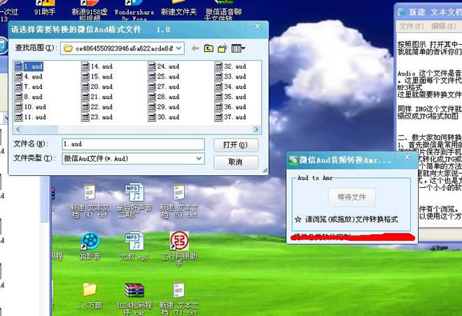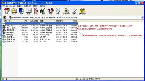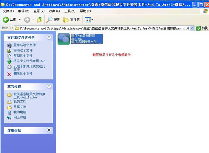 2、这里就向大家说一下音频的转换。这里我搜了很多资料,没有直接转成MP3格式的。所以建议大家转化成arm格式,这个也是支持播放的。 用工具包里的3-微信Aud音频转换Amr v1.0 绿色版。解压,然后打开软件会出现一个小小的软件界面 如图