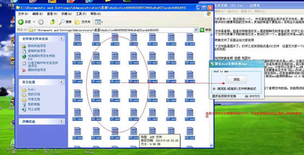 这里软件有个浏览。如果你的文件很少只有一个两个音频文件的话。你就用浏览。但是当文件过多地额时候。你可以使用这个方法。 打开音频文件夹然后选择你要转换的文件。要转几个就选几个然后按住鼠标左键拖到浏览那个位置。如图所示