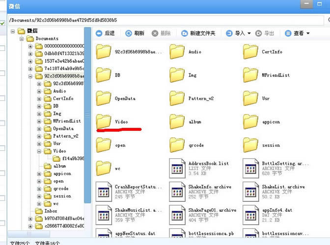 3、关于视频文件,在微信里面录制的有MP4格式 这个由于ios系统显示。所以需要你一个个的去找,有个video的文件夹。在那里面