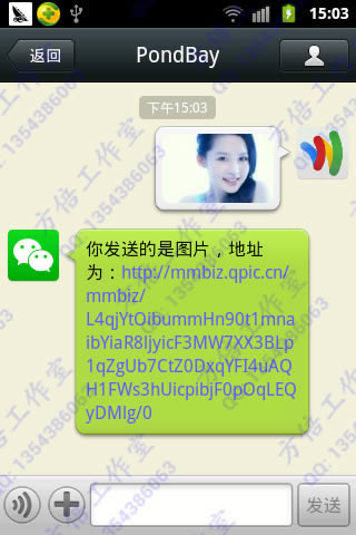 ToUserName 消息接收方微信号,一般为公众平台账号微信号 FromUserName 消息发送方微信号 CreateTime 消息创建时间 MsgType 消息类型;图片消息为image PicUrl 图片链接地址,可以用HTTP GET获取 MsgId 消息ID号