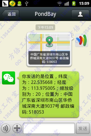 <xml> <ToUserName><![CDATA[gh_680bdefc8c5d]]></ToUserName> <FromUserName><![CDATA[oIDrpjqASyTPnxRmpS9O_ruZGsfk]]></FLACFromUserName> <CreateTime>1359036619</CreateTime> <MsgType><![CDATA[location]]></MsgType> <Location_X>22.539968</Location_X> <Location_Y>113.954980</Location_Y> <Scale>16</Scale> <Label><![CDATA[中国广东省深圳市南山区华侨城深南大道9789号 邮政编码: 518057]]></Label> <MsgId>5837017832671832047</MsgId> </xml>