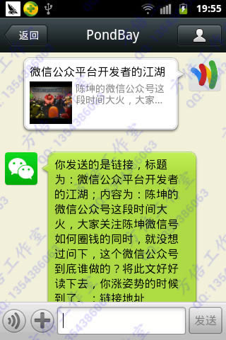 <xml> <ToUserName><![CDATA[gh_680bdefc8c5d]]></ToUserName> <FromUserName><![CDATA[oIDrpjl2LYdfTAM-oxDgB4XZcnc8]]></FromUserName> <CreateTime>1359709372</CreateTime> <MsgType><![CDATA[link]]></MsgType> <Title><![CDATA[微信公众平台开发者的江湖]]></Title> <Description><![CDATA[陈坤的微信公众号这段时间大火,大家..]]></Description> <Url><![CDATA[http://israel.duapp.com/web/photo.php]]></Url> <MsgId>5839907284805129867</MsgId> </xml>