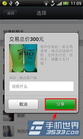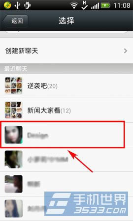 3)进入选择界面,选择一个好友,然后在显示出的界面,点击“分享”按键。