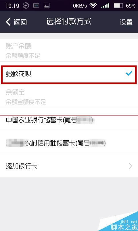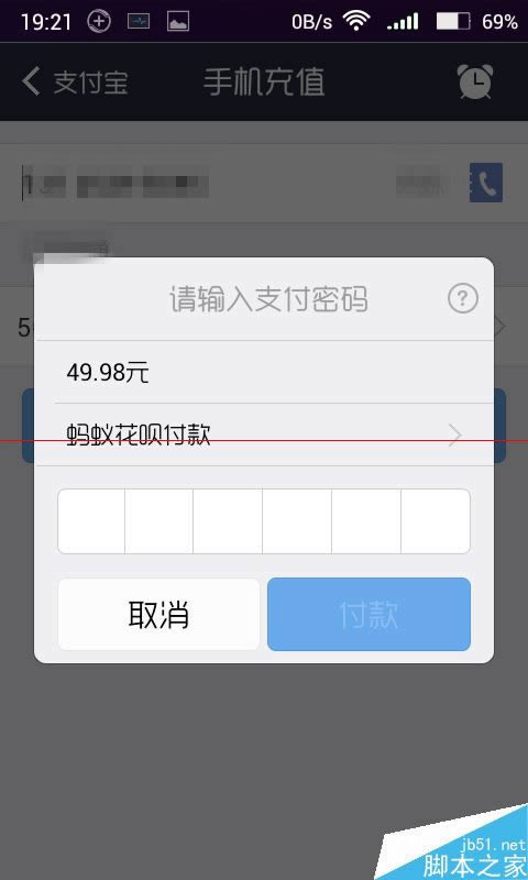 4、选择使用蚂蚁花呗付款方式,点击返回,输入支付密码点击付款即可