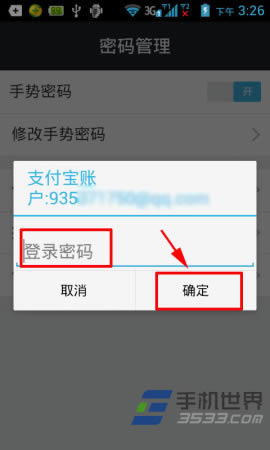 2)点击修改手势密码,然后输入你的登录密码。(如下图所示)