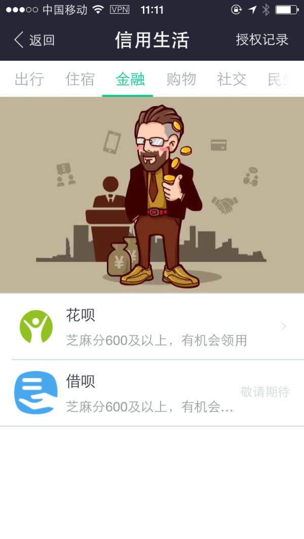 现在,用户在支付宝钱包「财富」一栏,点击进入芝麻信用分,可以在「信用生活—金融」中找到花呗和借呗这两项服务。