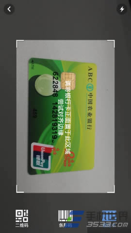2)在“扫码”界面点击“银行卡”,接下来出现扫码识别界面。(如下图所示)