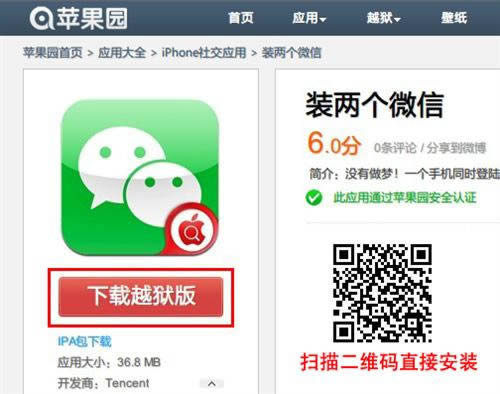 通过PC访问的朋友,请打开http://www.app111.com/info/51177/,点击“下载越狱版”,之后根据提示完成安装即可: