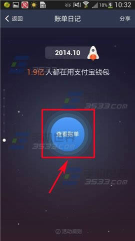 2)在界面能看到用户注册支付宝的时间,然后向上滑动屏幕可以查看下一页,在最后一页点击【查看账单】。