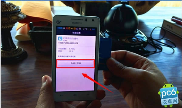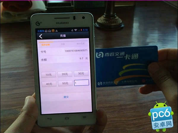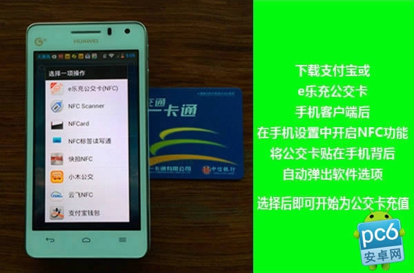 下载好后将公交卡贴在手机背后,手机会自动弹出选项