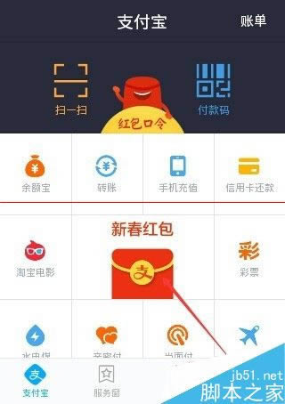 1、成功登录支付宝钱包,点击支付宝钱包主界面上的新春红包,如下图所示。
