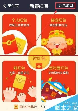 2、点击进入新春红包界面后,点击右上角的红包信息,如下图所示。