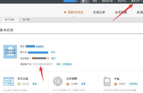 3、点击(账户设置)查看本账户是否已经绑定了淘宝账户