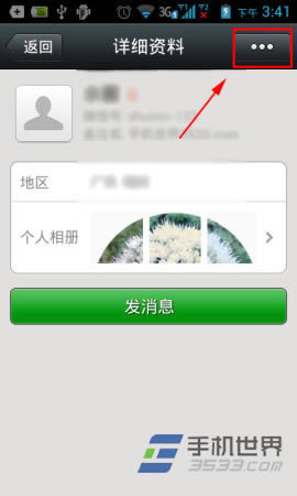 2)点击好友头像后会进入好友的聊天信息页面,点击头像进入详资料,点击右上角的“…”。(如下图所示)