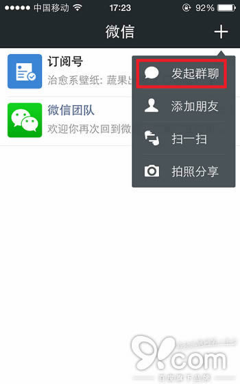 1、首先,点击微信右上角的“ ”号,点击“发起群聊”