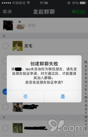 2、把你想要测试的小伙伴都拉进去吧!当你创建群聊成功的时候,你会发现变成了这样。结果就是,显示蓝色字体显示的人就是已经将你删除的人。
