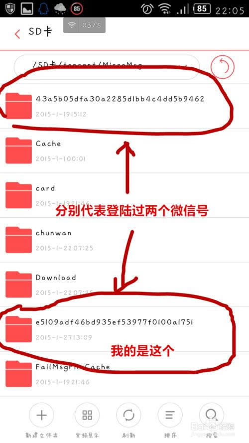 接着打开,你会看到很多文件夹但是有特别的几个或一个(看你登陆过几个微信),例如“r4ed323edcgdx.........”这种长文件夹,如图我登陆过两个