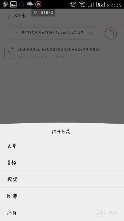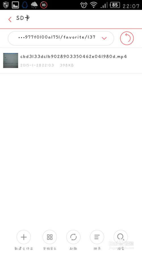 打开目录,找到“favorite”,这一步是重点,图2 就是你收藏过的东西,你就慢慢找,一般视频大小在400k左右而且里面只有一个文件,挨个打开,点击选择打开方式为“视频”查看是否是要找的视频