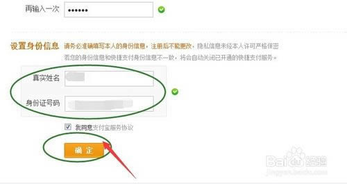 3、进入到支付宝注册页面,按照提示设置好登录密码及支付密码,在这里要注意登录密码不能和支付密码相同,支付密码是将来购物付款的密码,涉及钱财,要谨记,最后的真实姓名和身份信息也要如实填写,这个是不能修改的