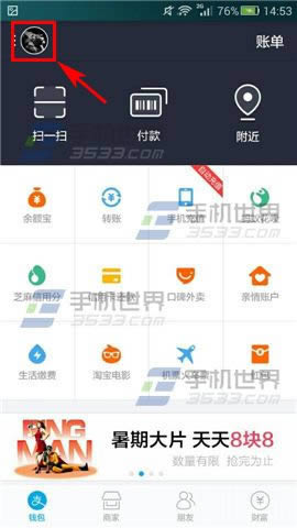 1)打开手机支付宝,点击左上角的【头像】,选择【设置】;(如下图)