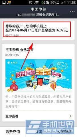 4)点击“余额查询”之后,系统就会自动的显示出手机余额。(如下图所示)