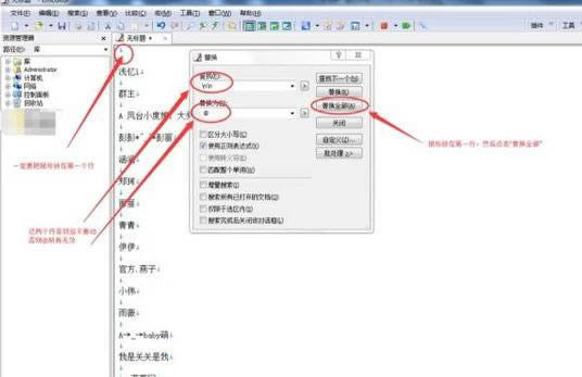 第五步:打开EmEditor_v14软件,粘贴刚才复制的群成员名字,(Alt+V或者右键粘贴)点击搜索选项中的替换